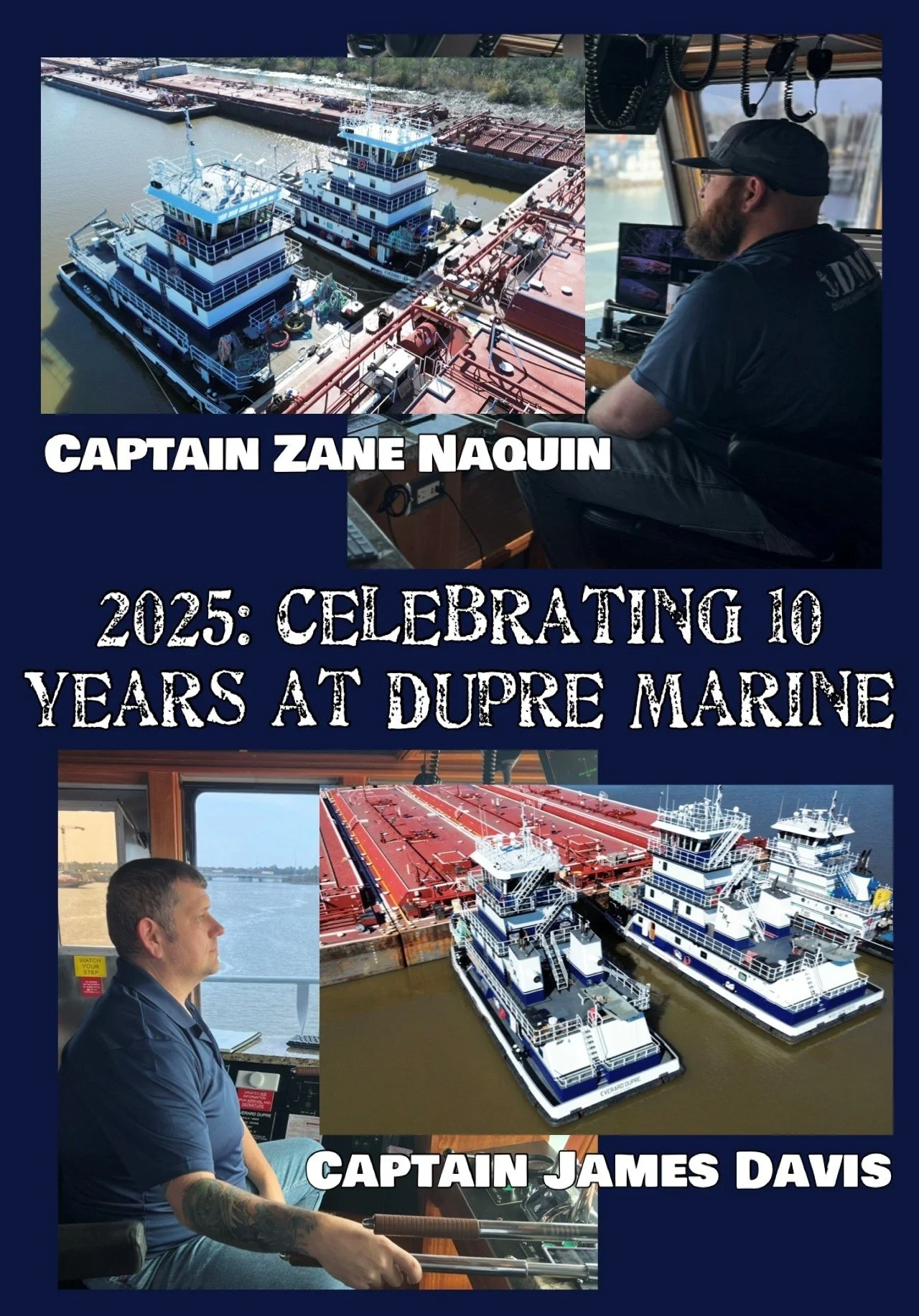 Thank you, Captain Zane and Captain Tub, for your loyalty and hard work over the past decade. We look forward to many more years together as part of the Dupre Marine Family!
