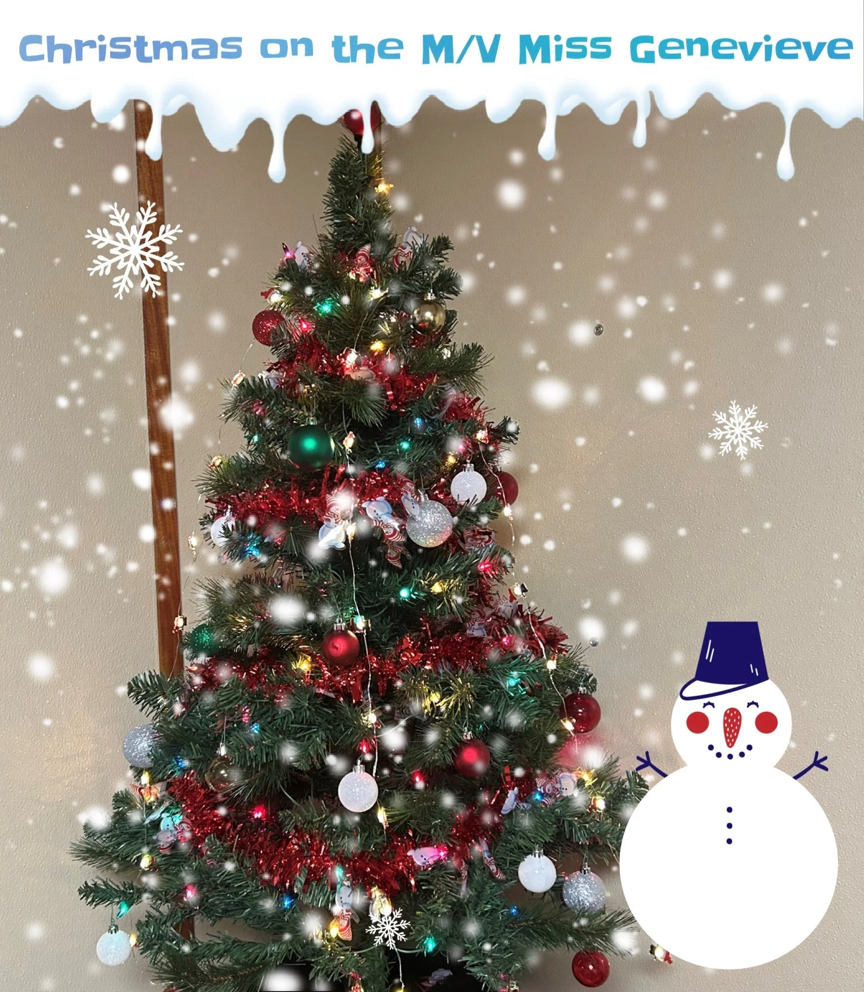 The M/V Parker James all lit up for Christmas!